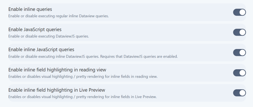⚠️ 注意:因为我们使用的是 dataviewjs 脚本,如果不开启此选项,代码将无法运行。
